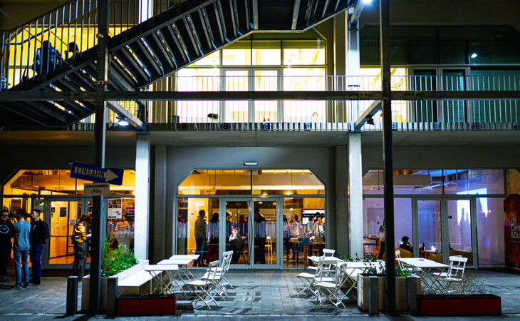 Das Kulturhaus Brotfabrik ist eine von mehreren Locations am Areal der Brotfabrik Wien. Beim Betreten des Areals durch den Schranken ist gleich der weiße Schriftzug "Kulturhaus" auf der großen Außentreppe aus Metall zu sehen.