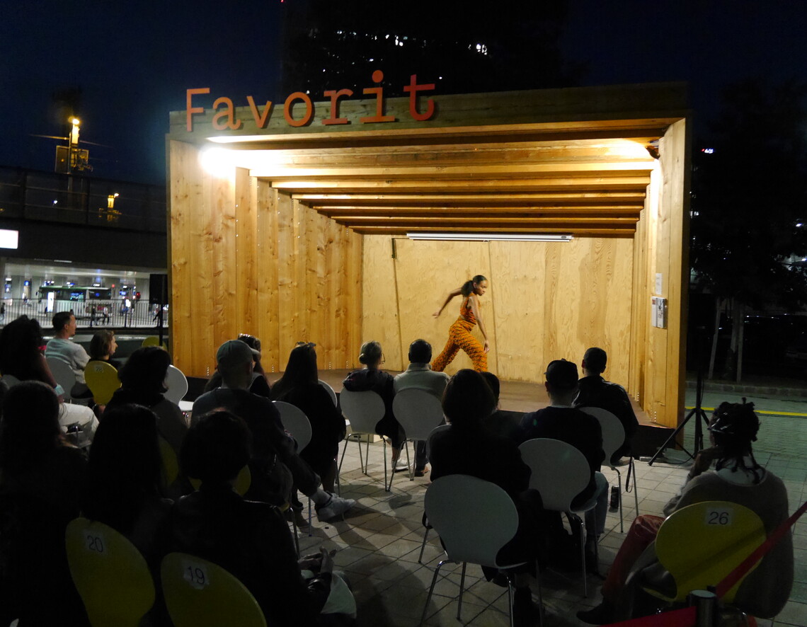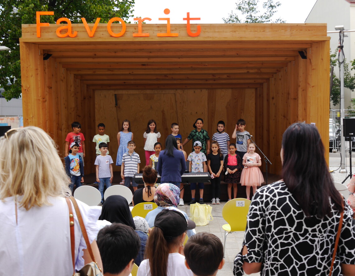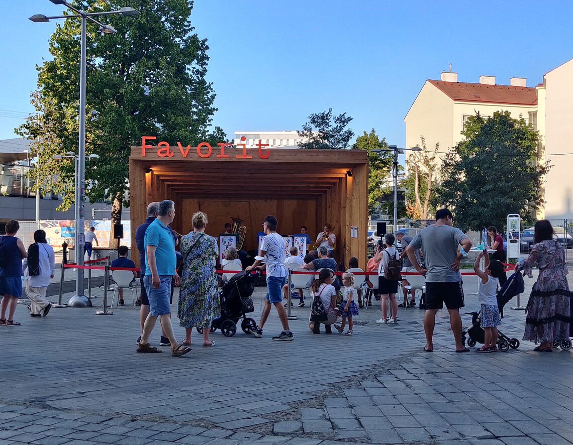 Eine informelle Pavillon-Bühne zwischen allen Kulturen, Beheimateten und Neuankömmlingen in den neuen Wohnvierteln im 10. Bezirk.